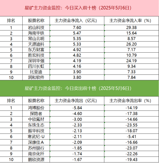 从个股主力资金监控数据来看,主力资金净流入前十的个股中算力股较多,岩山科技净流入居首。