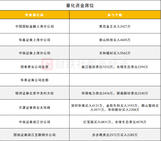 量化资金活跃度一般,天和磁材获一家量化席位买入超5000万。