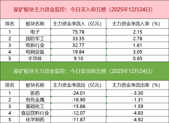 从主力板块资金监控数据来看,电子板块主力资金净流入居首。