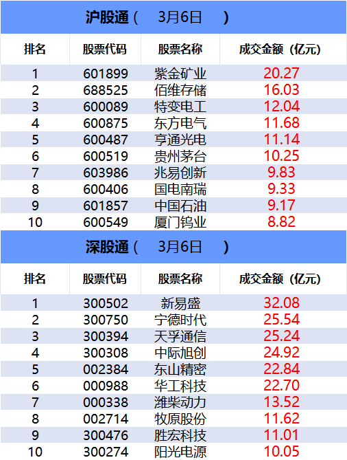 从沪股通前十大成交个股来看,紫金矿业位居首位;佰维存储和特变电工分居二、三位。