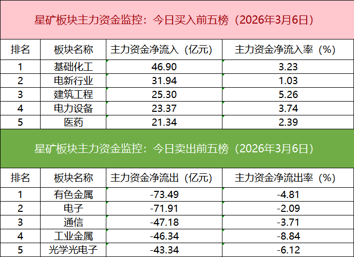 从主力板块资金监控数据来看,基础化工板块主力资金净流入居首。
