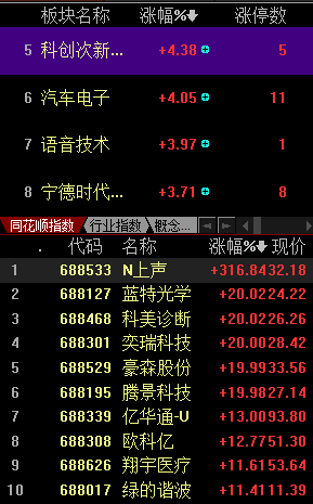开盘后,次新板块情绪继续好转,顺控发展快速拉升,华亚智能冲刺4连板;科创次新腾景科技问问封住一字涨停晋级3连板。