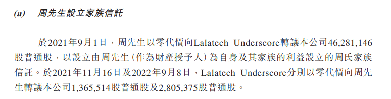 在最新的招股书中,这部分换成了周胜馥设立的周氏信托。