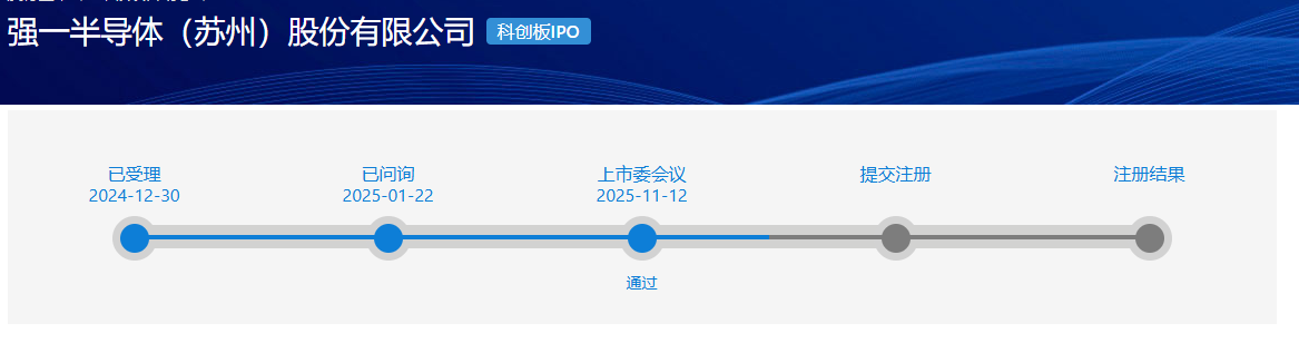 《科创板日报》11月12日讯(记者 陈俊清) 今日(11月12日),上交所上市审核委员会审议并通过了强一股份的科创板IPO申请。该公司科创板IPO申请于2024年12月30日获受理,期间历经两轮审核问询。