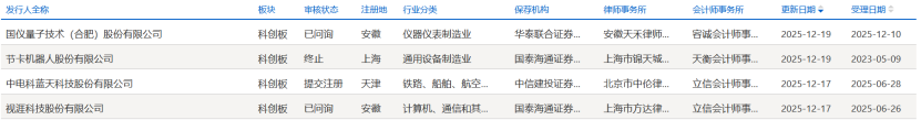 国仪量子科创板IPO于2025年12月10日获得受理。