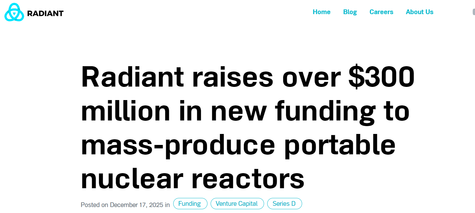 此次融资为Radiant意义重大的发展一年画上句号。公司加强了管理团队建设,包括聘请前核能助理部长Rita Baranwal博士担任首席核能官。