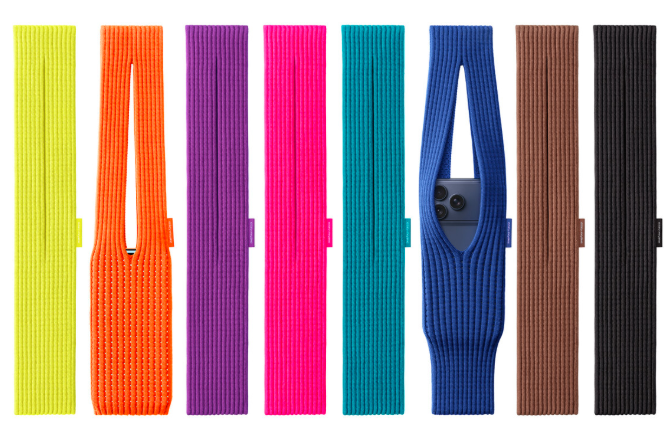 iPhone Pocket是特别版产品。短带款提供八种色彩外观:柠檬色、柑橘色、紫色、粉色、孔雀绿色、宝石蓝色、肉桂色和黑色。短带款iPhone Pocket售价为1299元。