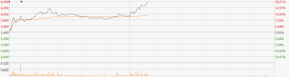 (上海,编辑 阿荣)讯,创梦天地(01119)继前一个交易日大涨之后,周三高开8.9%,一路上涨,午后再度冲高。截止发稿,涨18.30%,报6.480港元。