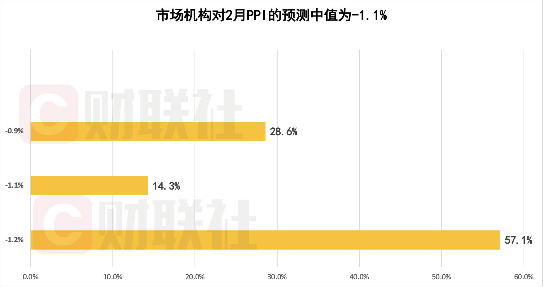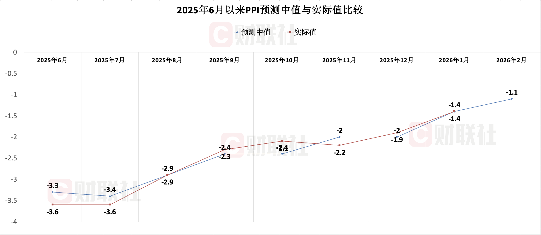 从同比读数来看,市场机构预计2026年2月PPI同比降幅有望继续收窄,对2月PPI的预测中值为-1.1%,预测区间为-1.2%至-0.9%。