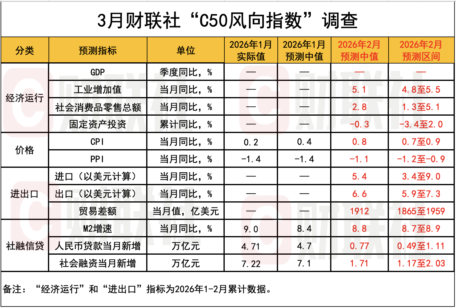 C50风向指数调查:2月新增信贷及社融或同比少增、M2增速小幅回落