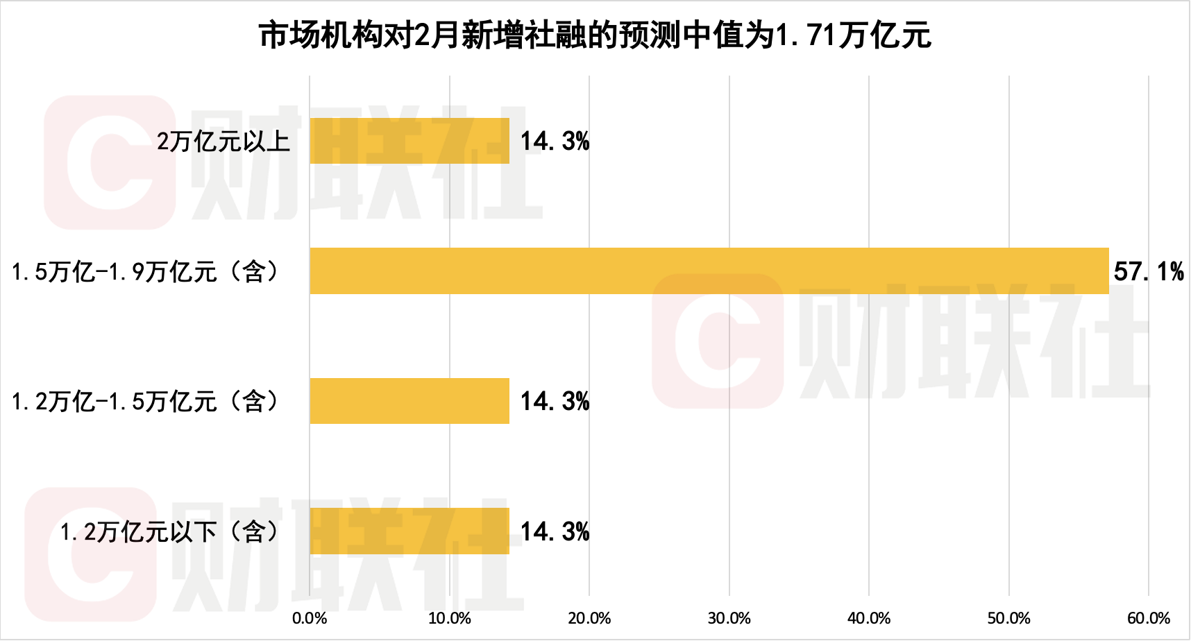 2月新增社融或同比少增,市场预测中值为1.71万亿元