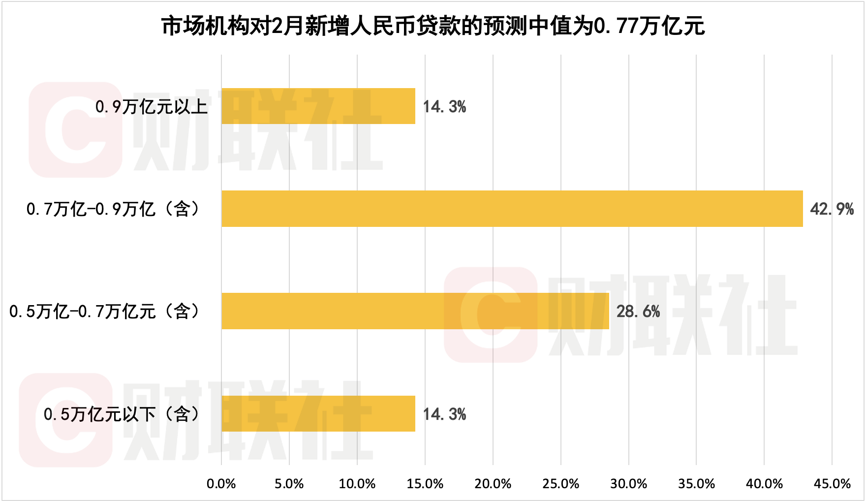 2月人民币新增贷款或同比少增,市场预测中值为0.77万亿元