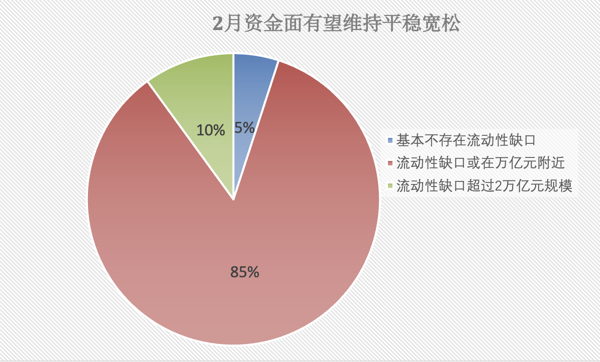 在20家参与调查的市场机构中,仅1家认为基本不存在流动性缺口;17家认为整体资金压力不大,2月的流动性缺口或在万亿元左右;2家认为中性趋紧,流动性缺口超过2万亿元规模。