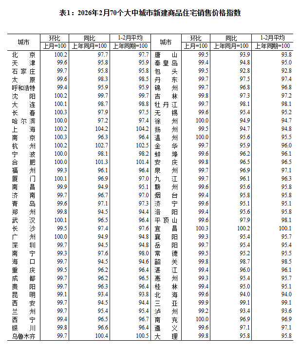 ——国家统计局城市司首席统计师王中华解读2026年2月份商品住宅销售价格变动情况统计数据