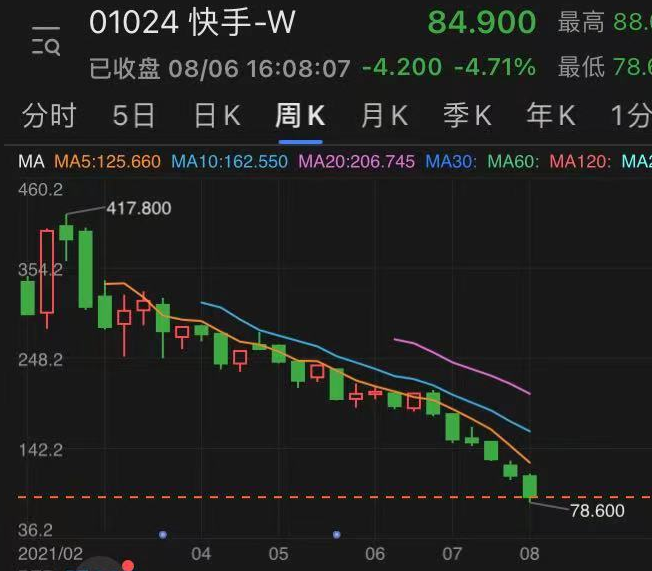 而这篇文章发布的背景,正值快手股价一路走低的当下。顶着“中国短视频第一股”光环的快手,自今年2月份上市以来,股价便跌跌不休。
