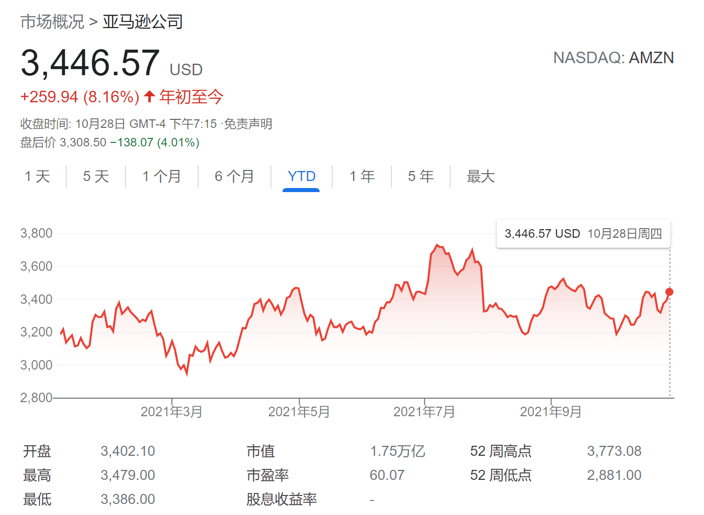 受此影响,亚马逊股价盘后跌超4%,今年迄今该股上涨了8.16%。