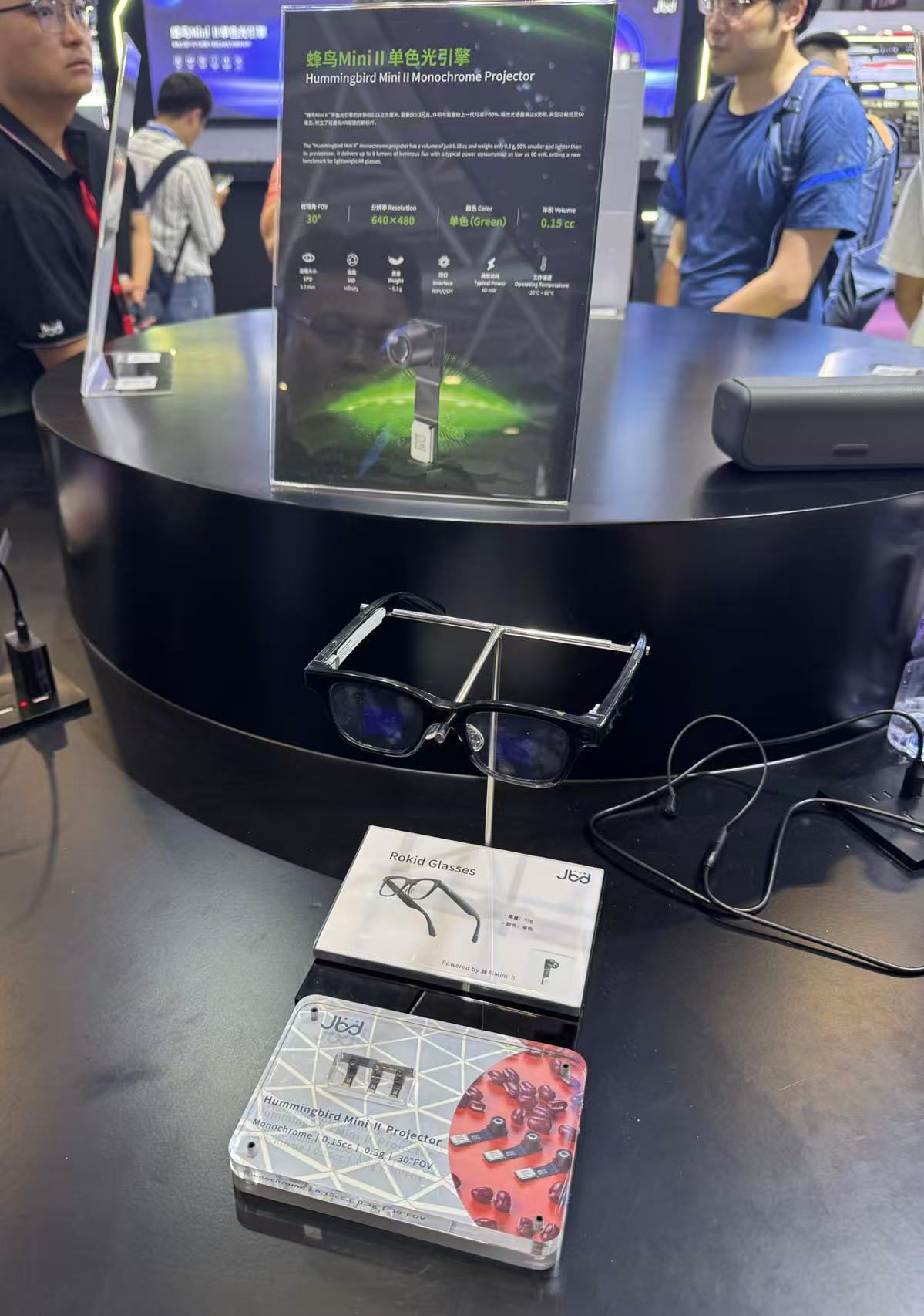(JBD光引擎上机Rokid Glasses 记者摄)