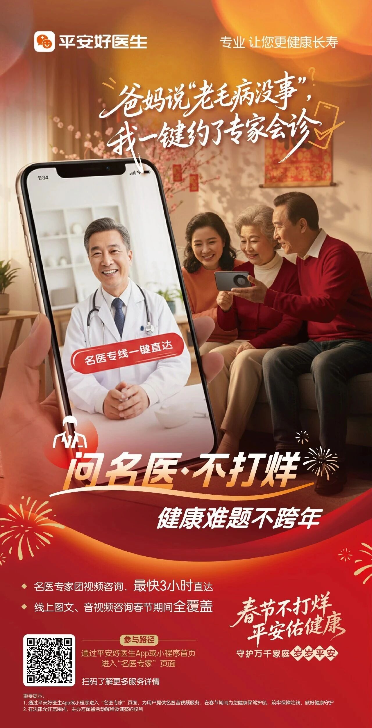 平安好医生(01833.HK)则以服务保障为核心,于2月9日正式启动“春节不打烊·平安佑健康”专项行动,推出三大类服务保障与九项具体举措。