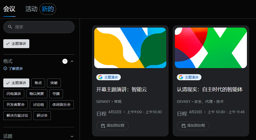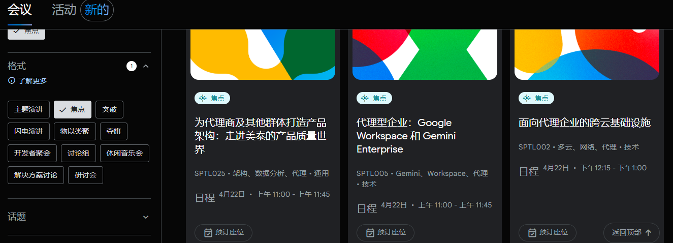 Agentic AI(智能体)为本届大会第一主题,谷歌重点推动AI从对话式升级为可自主规划、跨系统执行复杂任务的工作流AI,聚焦ADK 2.0、A2A协议及企业级AI代理的规模化落地,覆盖员工效率、客户服务、安全运营等多场景。