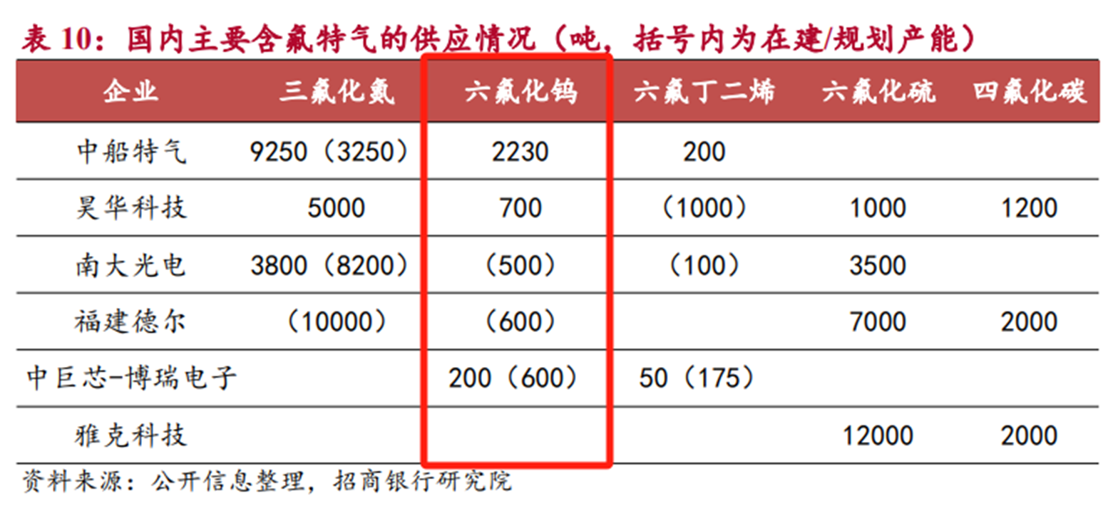 用量最大的三氟化氮和六氟化钨方面,国内已有中船特气、南大光电、昊华科技等企业陆续向台积电、中芯国际供货。