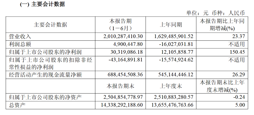 其中,第二季度营业收入10.65亿元,同比增长17.93%;净利润0.57亿元,同比下降87.98%;扣非后的净利润为-0.15亿元,同比下降149.18%。