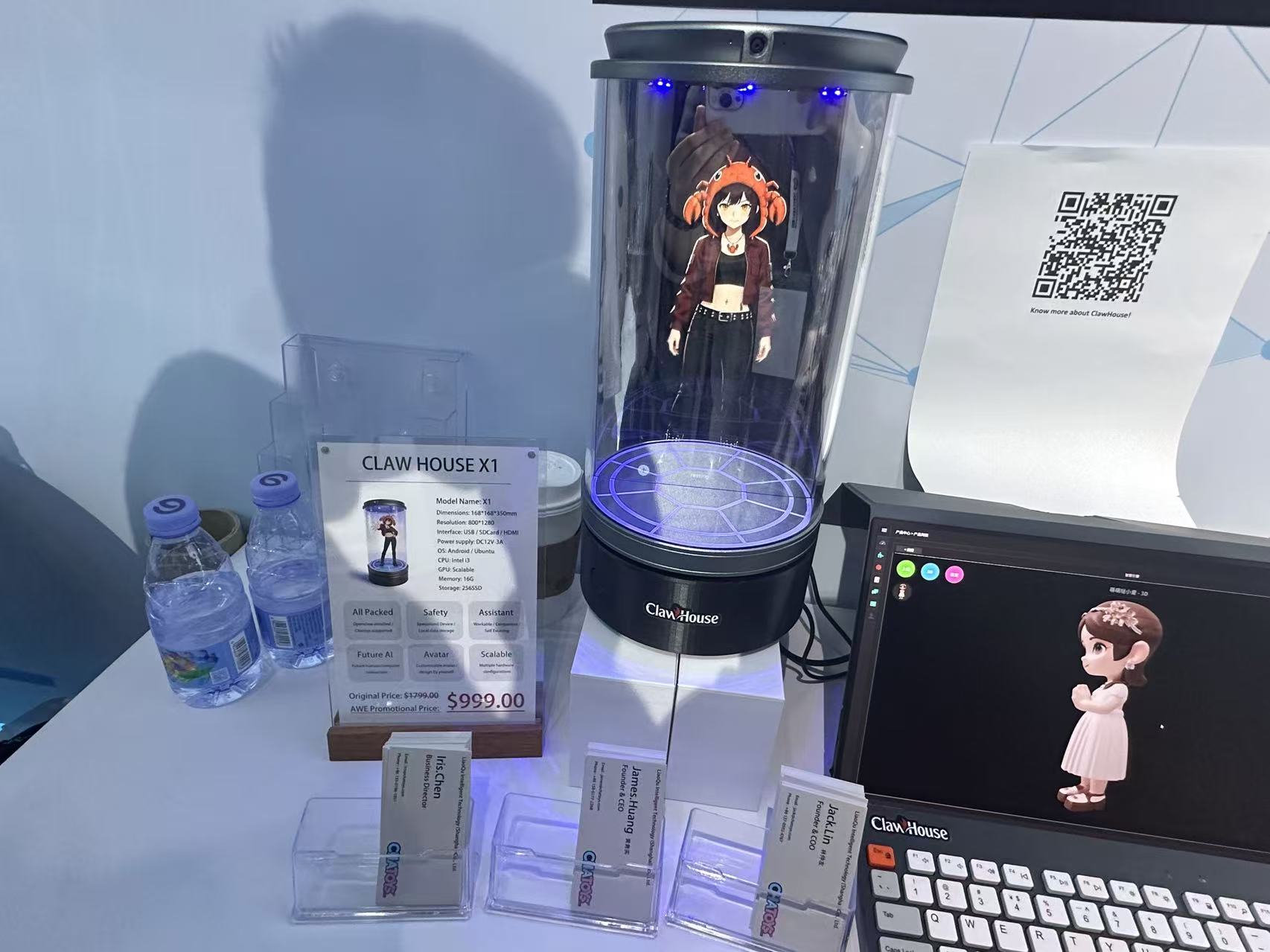 这款被称为ClAW HOUSE (龙虾舱)的智能体交互终端,预装 OpenClaw 和常用 SKILL,可开箱即用,售价999元美金,也是在AWE上首次亮相。
