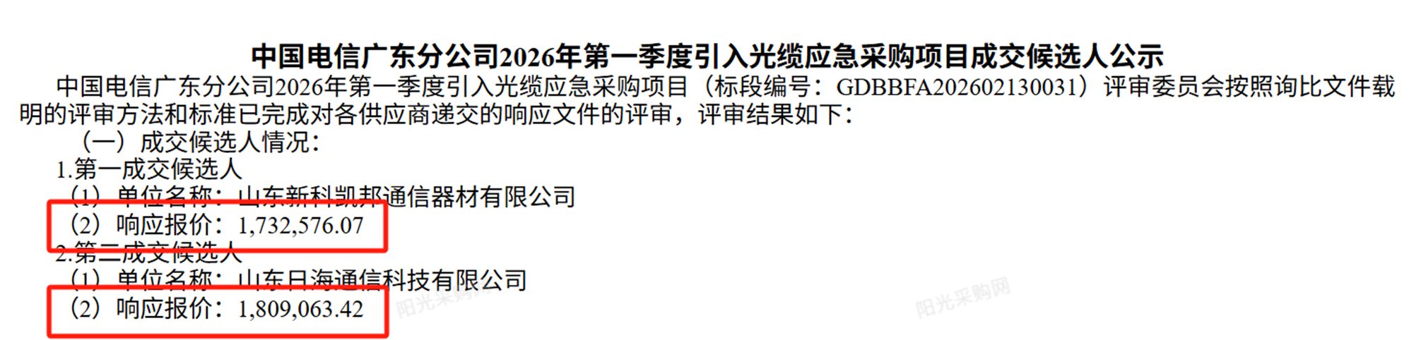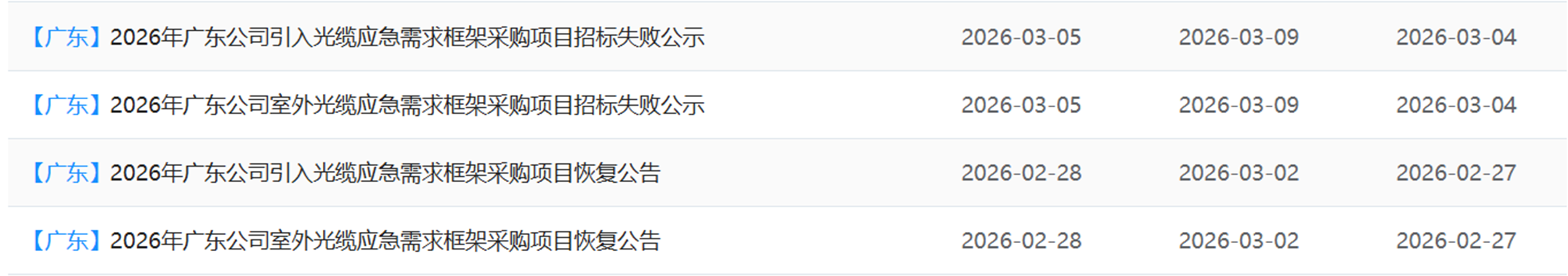 同样几经波折的还有广东电信2026年引入光缆及室外光缆应急采购两个项目。