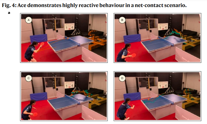 “Ace拥有超凡的读球能力,能精准判断来球的旋转,反应速度也超乎寻常。由于它并非通过观察人类比赛来学习,而是通过模拟训练自主学习,因此其反应方式与人类选手不同,常会制造出令人意外的局面”。Dürr说道,“与此同时,职业人类选手非常擅长适应对手并找出其弱点,这也是我们正在努力改进的方面。”