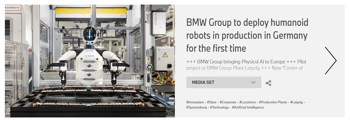 2月28日讯(编辑 赵昊)周五(2月27日),宝马集团在官网宣布,公司首次将物理人工智能引入欧洲——在莱比锡工厂启动了人形机器人试点项目。