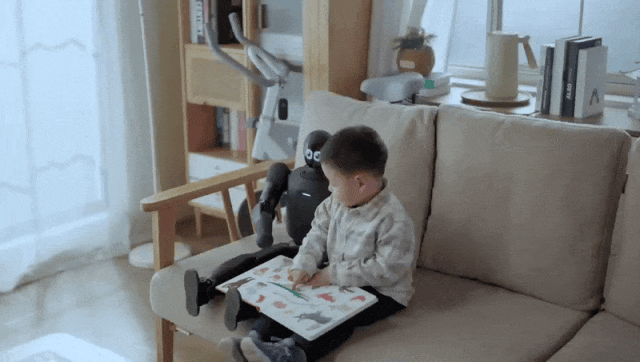 正如前面提到的,启元Q1规避了全尺寸人形机器人的重量问题,耐摔、耐炸的属性极大减小了科研人员在真机上验证模拟算法时的试错成本。这次智元还展示了儿童陪伴场景,如Q1机器人与孩子互动、教英语。通过内置的“智元灵心”AI平台,Q1机器人支持进行自然对话、百科问答,可以教用户跳舞或练习英语口语。