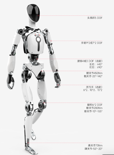 其2024年财报显示,**人形机器人是其主要在研项目,已开发出超轻量化和高拟人化的人形机器人产品人形机器人T1pro(见下图)——身高160cm,体重43kg(含电池不含皮肤),共71个自由度,已被成功推广交付到客户的应用场景进行测试。另外,其已经进行了协作机器人的硬件和软件基本测试,成功运行于公司理疗机器人和复合机器人,同时推广到客户的应用场景进行测试,优化设计工作基本结束。