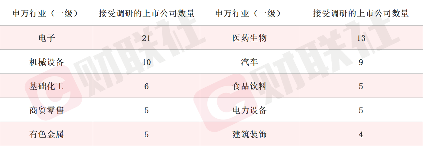 3月29日讯(编辑 宣林)据Choice数据统计,截至今日,沪深两市本周共120家上市公司接受机构调研。按行业划分,电子、医药生物和机械设备行业接受机构调研频度最高。此外,食品饮料、商贸零售等行业关注度有所提升。