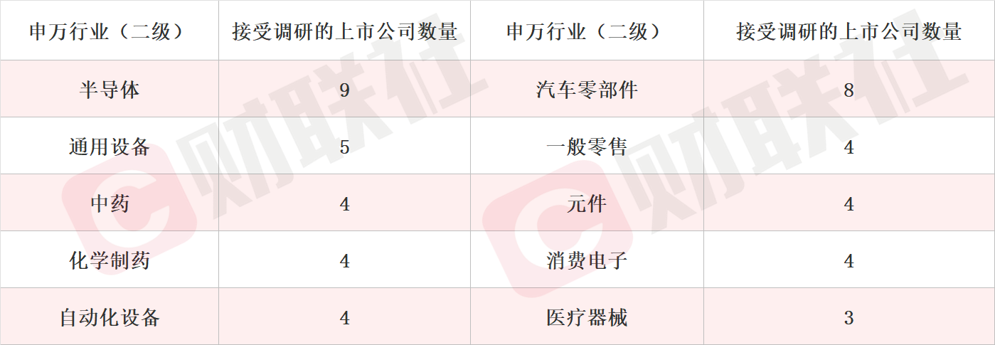 细分领域看,半导体、汽车零部件和通用设备板块位列机构关注度前三名。此外,中药、化学制药等行业机构关注度提升。