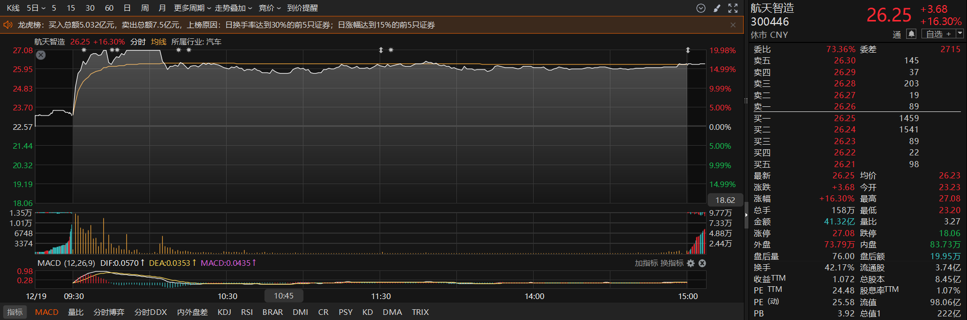航天智造周二发布机构调研纪要表示,公司全资子公司航天模塑在汽车内外饰件领域具有产业布局、研发技术、客户资源与内部管理等明显竞争优势,客户包括吉利汽车、长安汽车、一汽集团、广汽乘用车、奇瑞汽车、比亚迪汽车等多家国内主流整车厂商及全球知名的汽车零部件一级供应商,与华为鸿蒙智行等新能源主流品牌建立了良好合作关系。其2023年年报显示,公司积极推动航天模塑智慧座舱与自动驾驶融合项目落地。