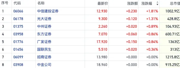 政策及分红利好驱动资金布局 中资券商股逆势上涨