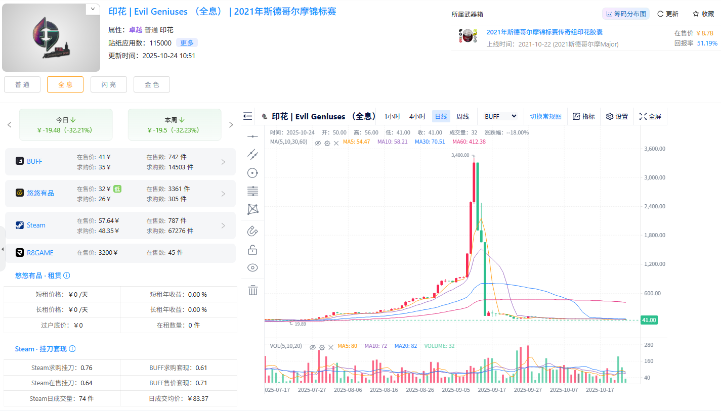 无论是“以旧换新”还是“T+14”,本质上,都削弱了《CS2》游戏饰品的投机属性。此前《CS2》游戏饰品市场投机行为普遍,今年7至9月就曾发生“黑蛋”事件。“黑蛋”是《CS2》中北美战队Evil Geniuses参加2021年斯德哥尔摩锦标赛的全息战队贴纸,此前其单价曾由19.89元一路被炒作至3400元,随后再度暴跌。