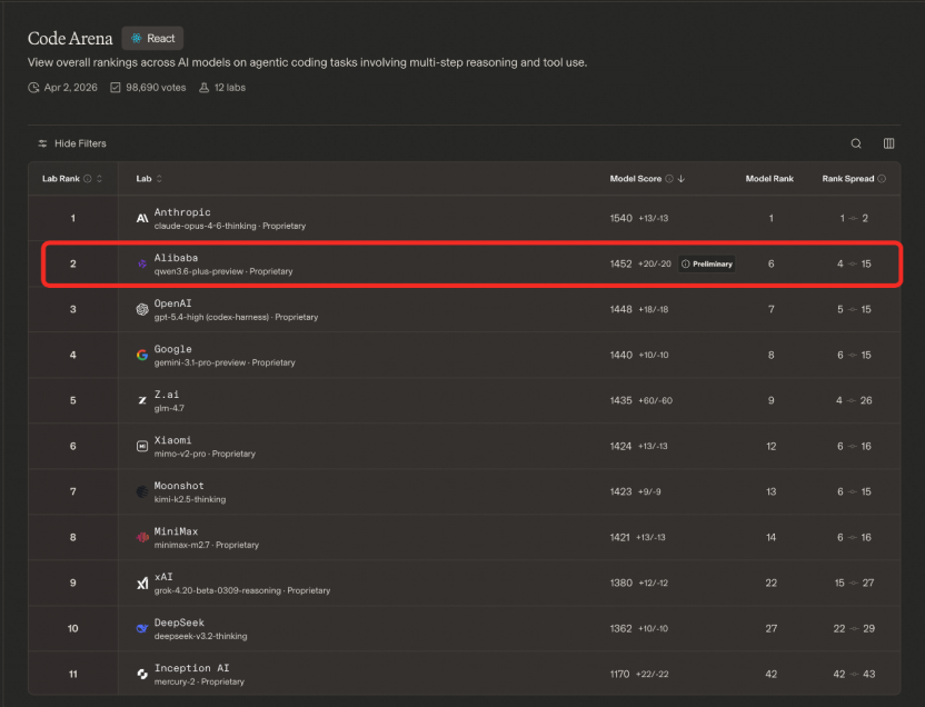 全球权威大模型盲测榜单公布 阿里千问3.6登顶中国最强编程模型