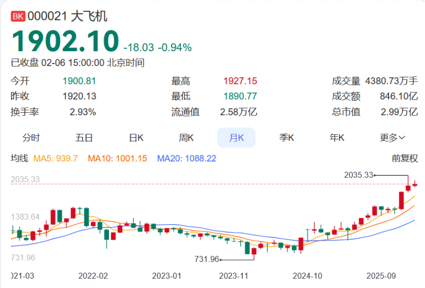 例如,大飞机概念股航发科技今年以来累计涨幅为43.64%,针对股价波动,该公司于1月21日发布股票交易异常公告称,公司基本面未发生重大变化,存在市场情绪过热、非理性炒作风险,目前股价已处于近五年历史最高点,存在股价短期快速回落风险。