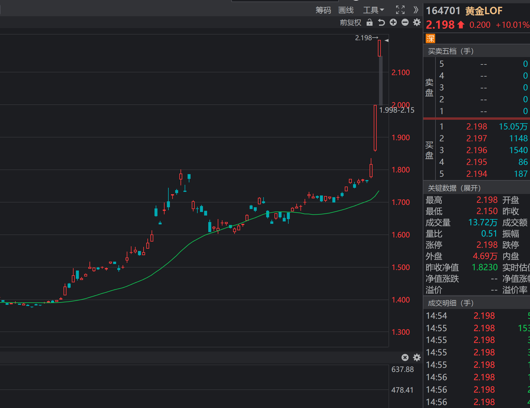 连续两日涨停 汇添富黄金LOF A类份额25日开市起至当日10:30停牌