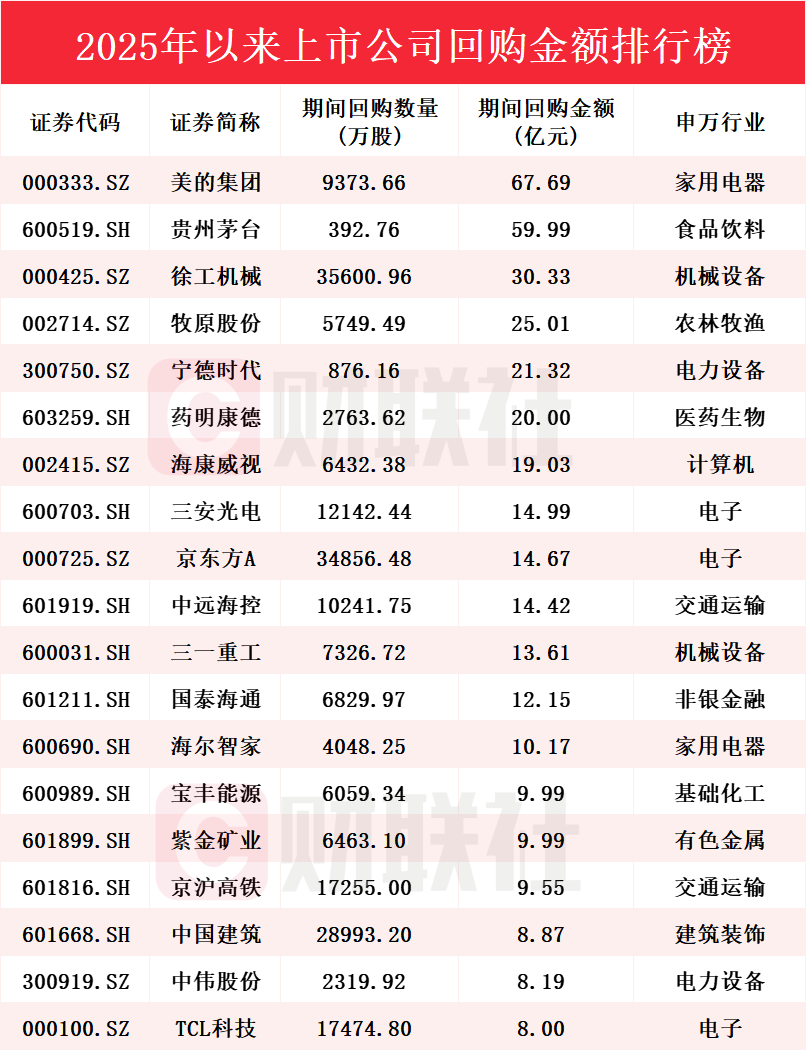 累计金额超1090亿!逾1340家A股上市公司今年以来实施回购,个股回购额排行榜出炉