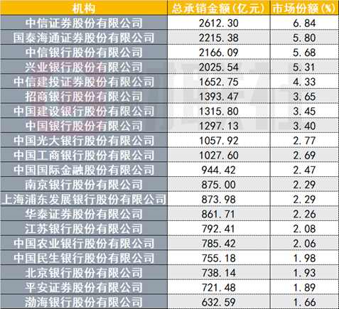头部机构承销份额稳固,4家今年承销额已超2000亿