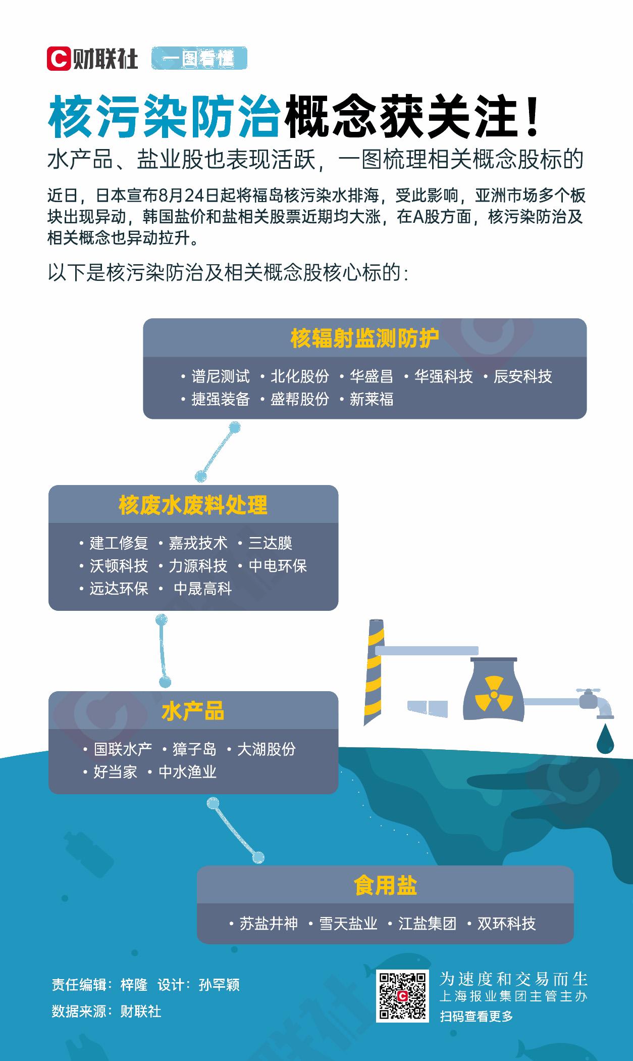 核污染防治概念获关注!水产品、盐业股也表现活跃,一图梳理相关概念股标的