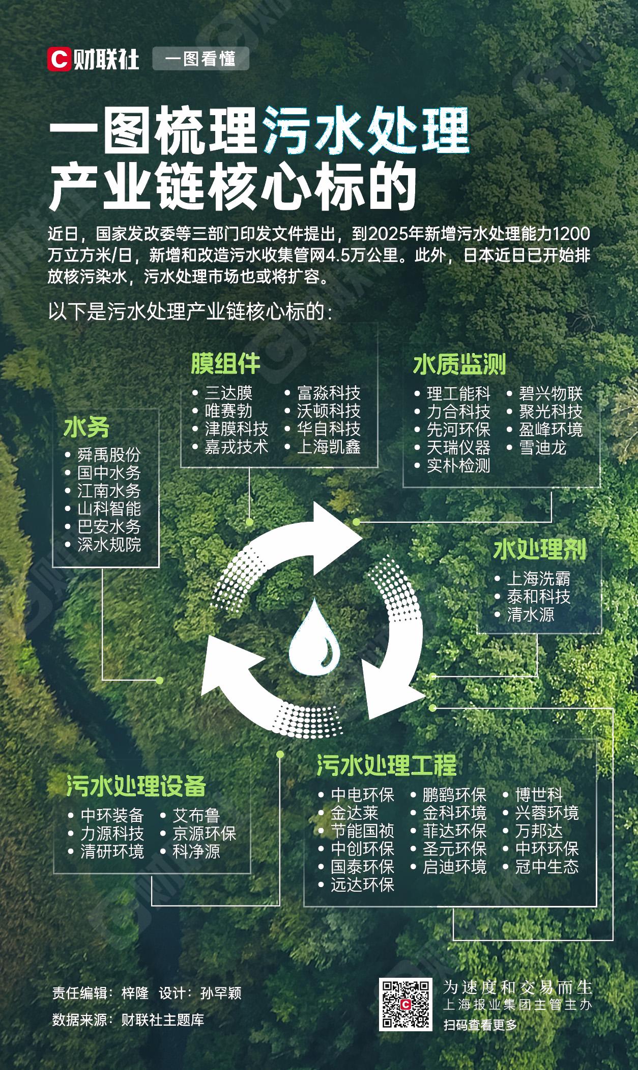 ①近日,国家发改委等三部门印发文件提出,到2025年新增污水处理能力1200万立方米/日,新增和改造污水收集管网4.5万公里。 ②此外,日本近日已开始排放核污染水,污水处理市场也或将扩容。