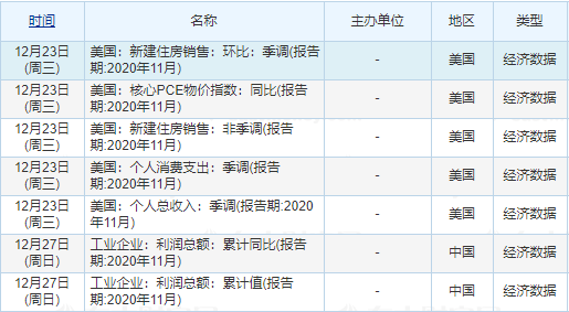 下周重要财经数据及事件:欧美主要股市圣诞节休市