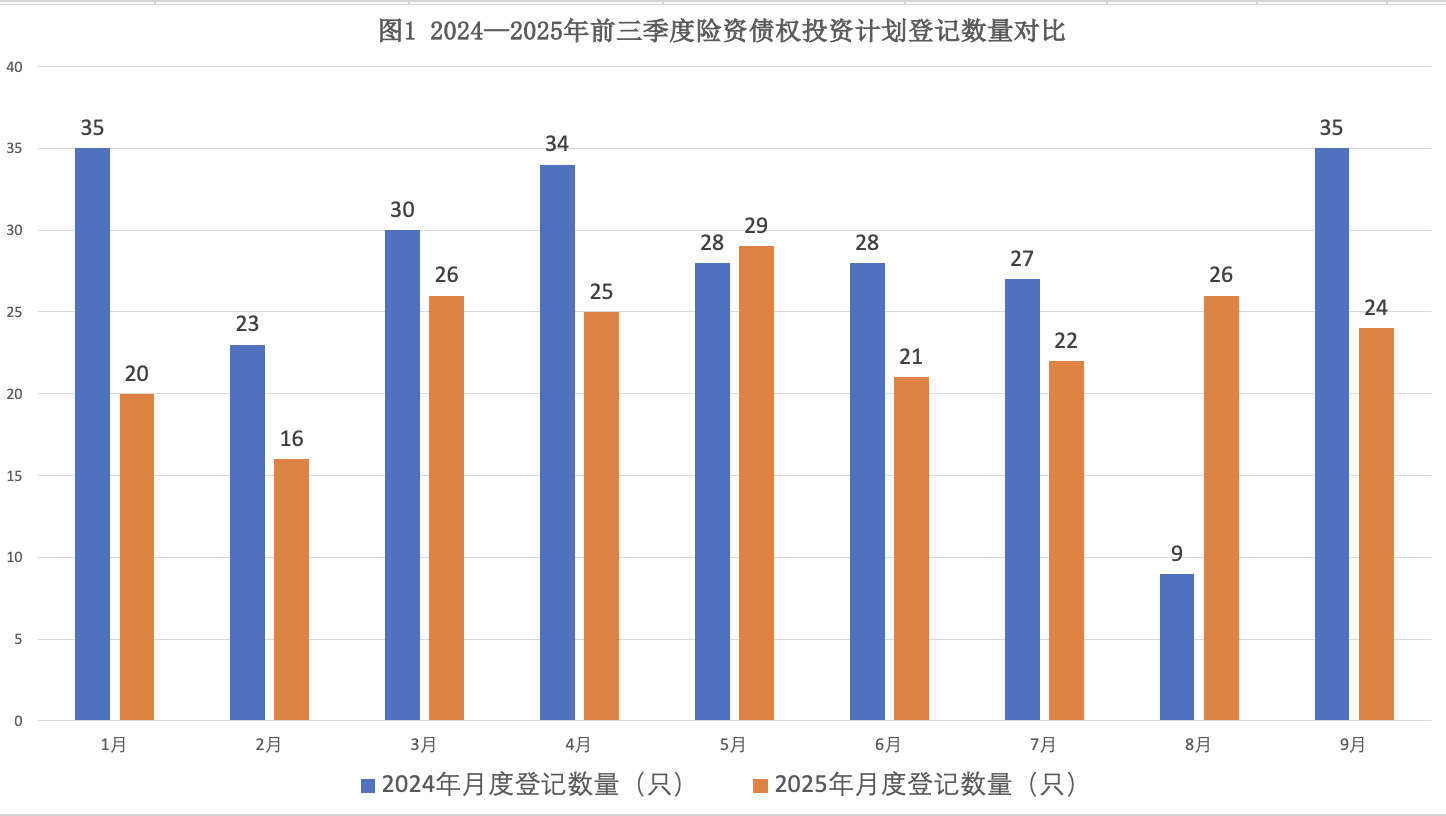 数据显示,2022年保险债权投资计划新增485只,新增规模8712亿元,同比分别减少8.1%、9.9%。2024年,债权投资计划375只、规模6177.33亿元,同比分别较少15.54%、16.03%。今年前三季度,28家保险资管机构共登记债权投资计划209只、新增规模3211.2亿元。截至三季度末,存续规模约1.58万亿元,较2024年末减少10%。