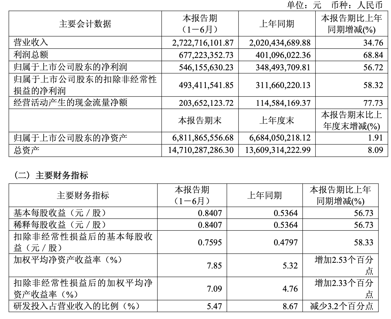 报告期内,其研发投入合计1.49亿元,同比减少14.96%,研发投入总额占营收比例为5.47%,同比减少3.2个百分点。