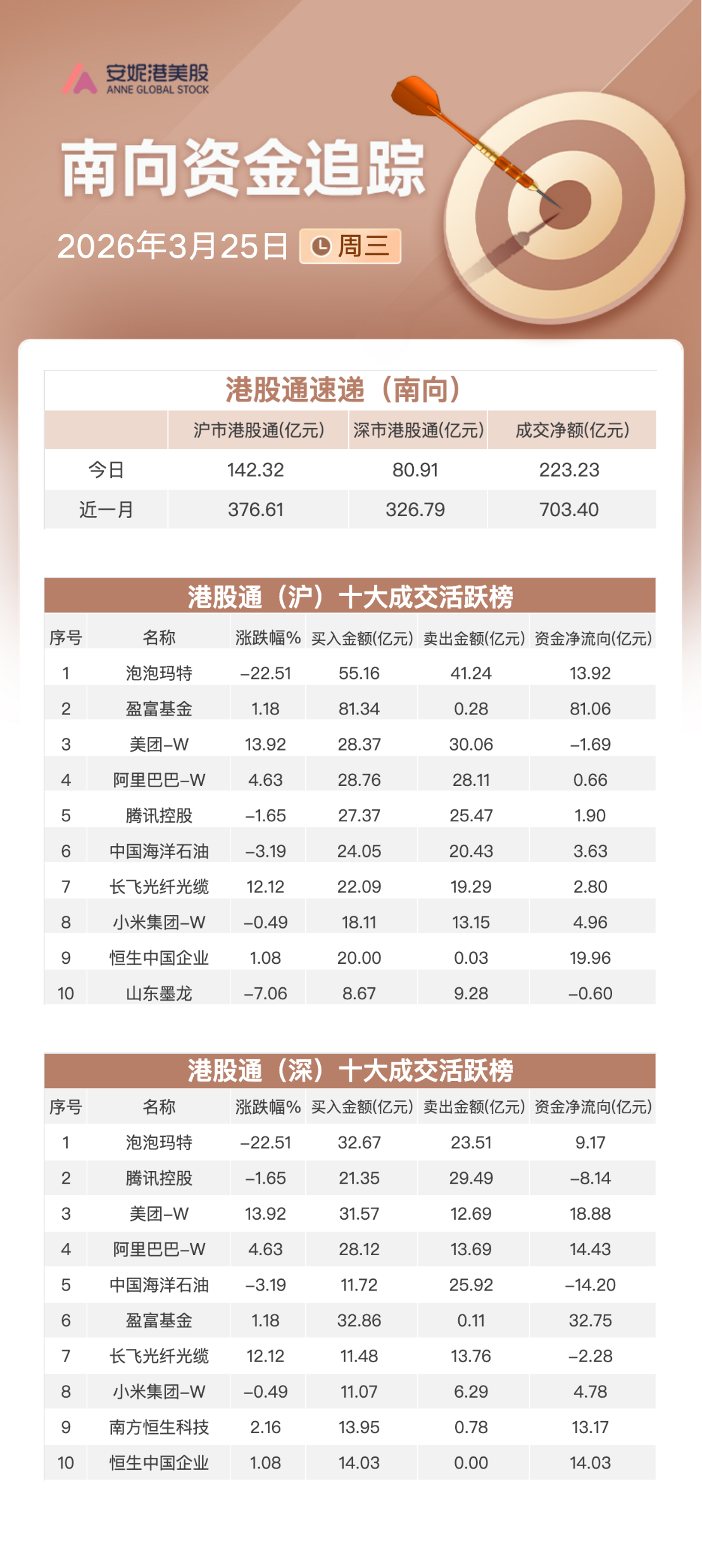 南向资金追踪|净买入超223亿港元 回补三大ETF加仓泡泡玛特及美团