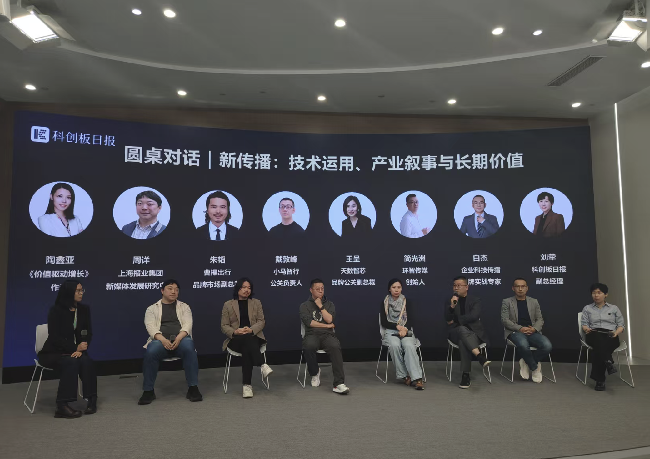 在圆桌对话环节,《价值驱动增长》作者陶鑫亚与来自媒体、企业的七位嘉宾,围绕“新传播:技术应用、产业叙事与长期价值”这一主题展开深度研讨与思想碰撞,现场观点交锋热烈,观众也积极参与提问交流,共探AI时代科创传播的实践路径与未来方向。