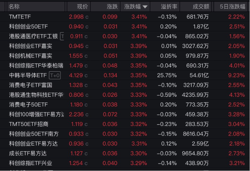 与此同时,A股ETF中,除了创新药ETF之外,沾边“龙虾”概念双创ETF、AIETF、TMT ETF等涨幅居前。