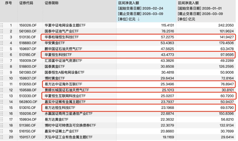 3月9日,南向资金罕见净买入372.13亿港元,创下历史单日新高。不过,到了3月10日,出现超170亿的资金流出,恒生科技指数的反弹持续性尚需观察。